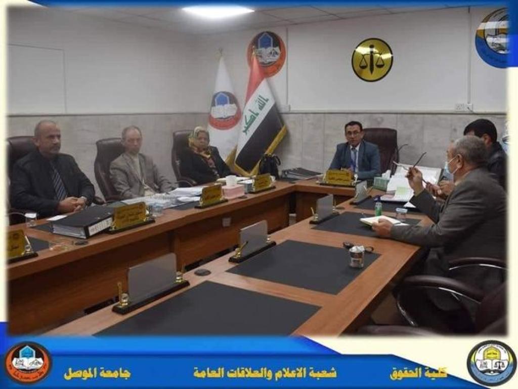 Based on the directives of Professor Dr. Qusai Kamal Al-Din Al-Ahmadi, President of the University of Mosul, on the need to open up and interact with universities and other scientific institutions, and with the follow-up of Assistant Professor Dr. Wissam Nemat Ibrahim Al-Saadi, Dean of the Faculty of Law at Mosul University, our college hosted on Sunday, November 27, 2022, a meeting of the Central Academic Promotion Committee of Al-Hamdaniya University Where the meeting was attended by Professor Dr. Muhammad Younis Yahya, one of the teachers of the Human Rights Law branch in our college / member of the Central Academic Promotion Committee at Al-Hamdaniya University, and this meeting expressed the interactive role of our university and the leading position of our college in the context of its communication with other colleges and universities.