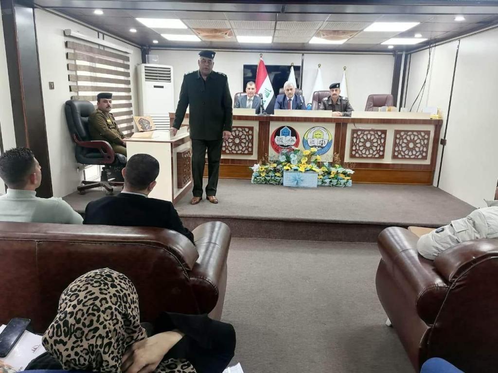 Under the supervision of Professor Dr. Muhammad Abbas Hamoudi, one of the teachers of the Public Law Branch at the College of Law at the University of Mosul, and within a series of student activities and practical lectures for our college, Assistant Professor Dr. Wissam Nemat Ibrahim Al-Saadi received the Dean of the College, in the presence of a number of members of the College Council and its teachers, on Wednesday, November 30, 2022, Dean Essam Waleed, Director of Criminal Evidence in Nineveh Governorate, accompanied by a number of employees of the Criminal Evidence Department, where a practical lecture was given to the students of the preliminary study (third stage in the evening / criminal investigation subject) in which he explained the modern scientific means and methods in the practice of the Criminal Evidence Directorate for its work, in addition to explaining the methods of dealing with Criminal cases in a way that contributes to uncovering the truth, and this lecture comes within the activities of the college aimed at activating the practical aspects in a way that contributes to consolidating the theoretical study in the mind of the student and preparing him to engage in practical reality after graduating from the college.