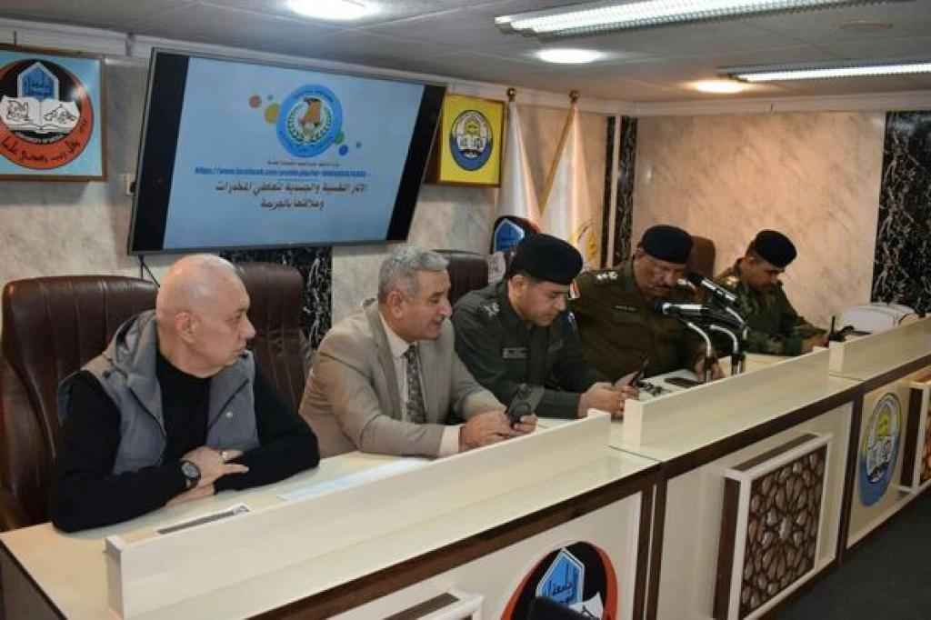 On Monday, December 5, 2022, Professor Dr. Khalaf Ramadan Muhammad, Associate Dean for Administrative and Financial Affairs at the College of Law at the University of Mosul, received the Ministerial Committee of the Ministry of Interior, which visited our college and gave an educational lecture to the students of the primary study, in which it explained the dangers of drugs, the means of their circulation, how to deal with them, and the penalty imposed on them. Especially since this crime is also considered a societal scourge that threatens the security of society, in addition to the criminal effects it generates that can threaten society as a whole. the college .
