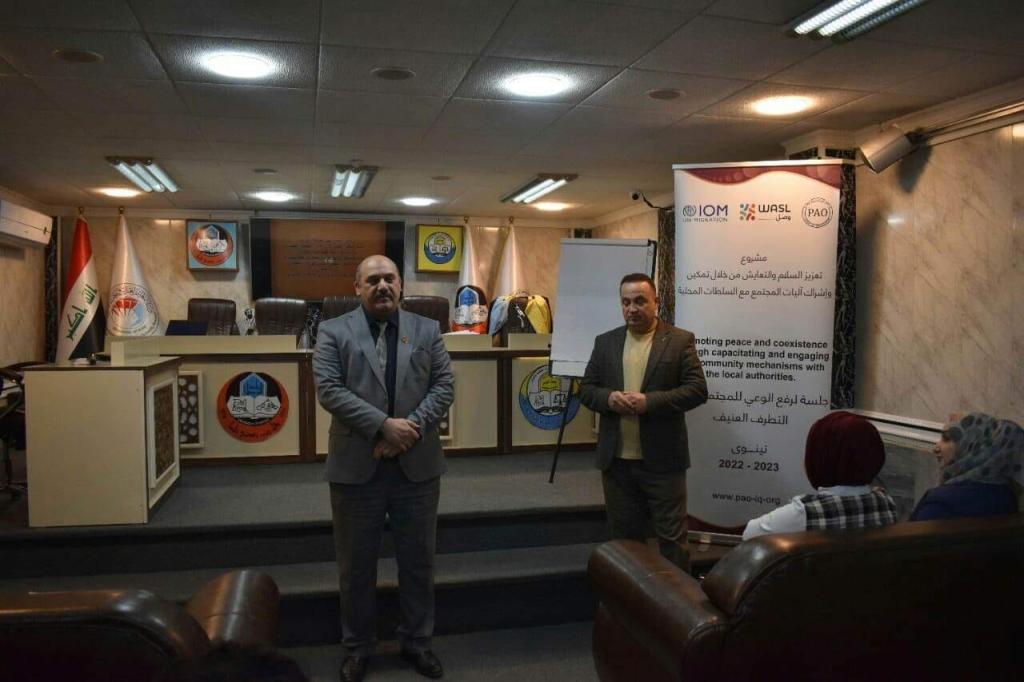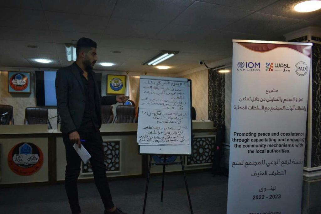 Under the auspices of Prof. Dr. Qusai Kamal Al-Din Al-Ahmadi, President of the University of Mosul, and under the supervision of Assistant Professor Dr. Wissam Nemat Ibrahim Al-Saadi, Dean of the Faculty of Law at the University of Mosul, the Human Rights Law Branch in our college, in cooperation with the Pao Organization, held on Wednesday, December 7, 2022, its training workshop tagged The Role of Universities in Combating Violent extremism, where Dr. Suhaib Khaled Jassim, one of the teachers of the Human Rights Law branch, gave scientific lectures on the axes of which dealt with the promotion of peace and coexistence by empowering and engaging community mechanisms with local authorities and raising community awareness to prevent violent extremism. It also witnessed the training of a number of college students on how to combat violent extremism with Statement of its concept, components and causes. The workshop also showed the importance of adopting curricula in communication, dialogue and discussion to resolve the conflict and the need to activate student activities and hold seminars and meetings that allow them to practice expression, present their issues and problems and work to solve them. With the need to separate political thought and sound academic life in universities, and The workshop witnessed a distinguished student presence, who asked many questions and inquiries about the topic of the workshop, which were answered in detail by those in charge of it. This workshop comes within a series of scientific, cultural and student activities for our college during the current academic year 2022_2023.