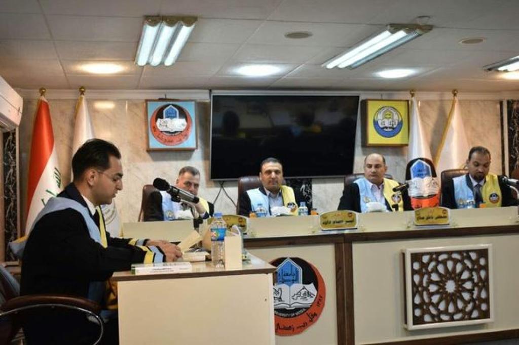 The discussion committee was chaired by Prof. Dr. Mustafa Nateq Saleh, with membership of Assistant Professor Dr. Essam Daoud, Assistant Professor Dr. Rayan Hashim Hamdoun, and membership and supervision of Assistant Professor Dr. Muhannad Ibrahim Ali.