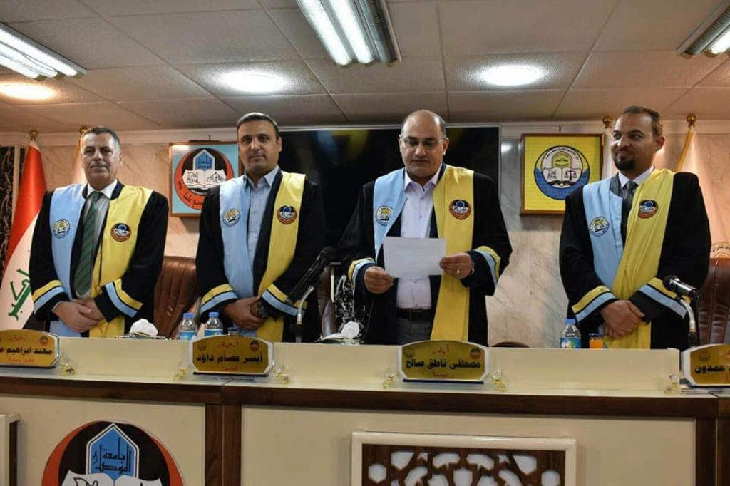 On Wednesday, December 21, 2022, the Private Law Branch at the College of Law at the University of Mosul discussed a master’s thesis on the legal system of exchange companies / a comparative analytical study, part of which was attended by Assistant Professor Dr. Wissam Nemat Ibrahim Al-Saadi, Dean of the College and a number of members of the College Council and its teachers.