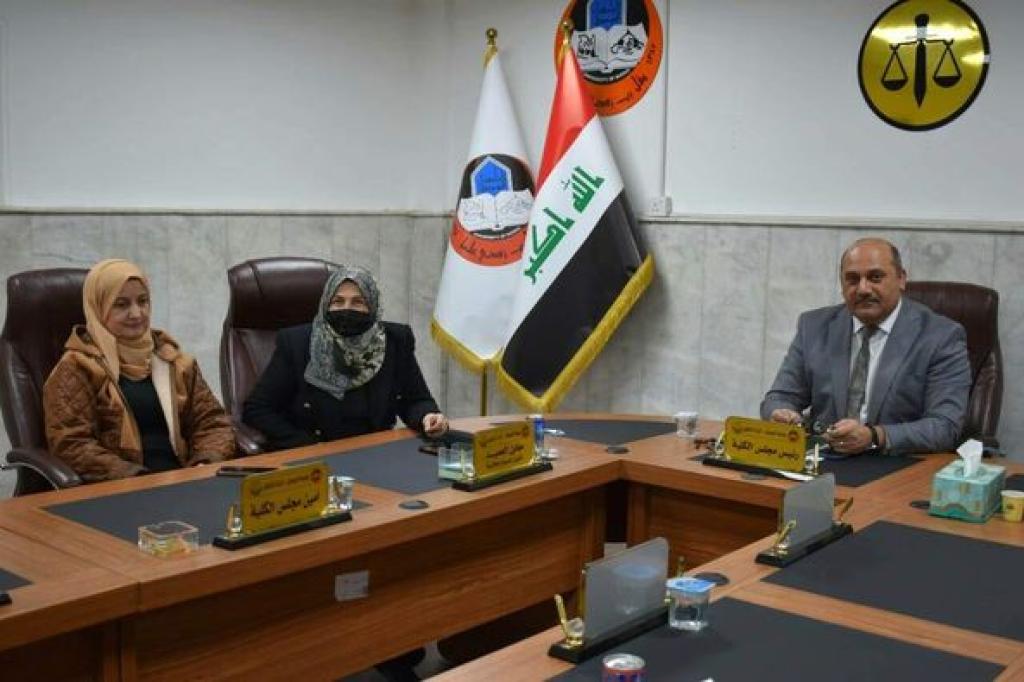 Assistant Professor Dr. Wissam Nimat Ibrahim Al-Saadi, Dean of the Faculty of Law at the University of Mosul, met with Dr. Dawlat Ahmed Abdullah, Secretary of the College Council, and the members of the Council Secretariat Unit, where the Dean of the College was briefed on the mechanism of the unit’s work and directed the need to work to complete the electronic documentation requirements for the tasks assigned to the Council Secretariat and the importance of going to follow up on the implementation of the decisions of the Council At the end of the meeting, the college council praised the efforts of the unit above in the framework of its daily work.