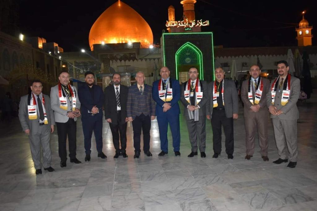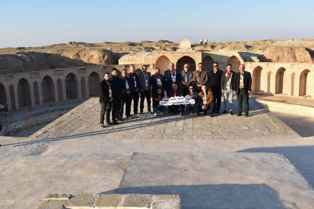 The delegation of the Faculty of Law at the University of Mosul was honored to visit the shrine of the two military Imams (peace be upon them) in Samarra, where the Public Relations Department represented by the University and School Relations Unit at the Military Shrine welcomed the members of the delegation and accompanied them in their visit and made a tour for them in the ruins of Samarra