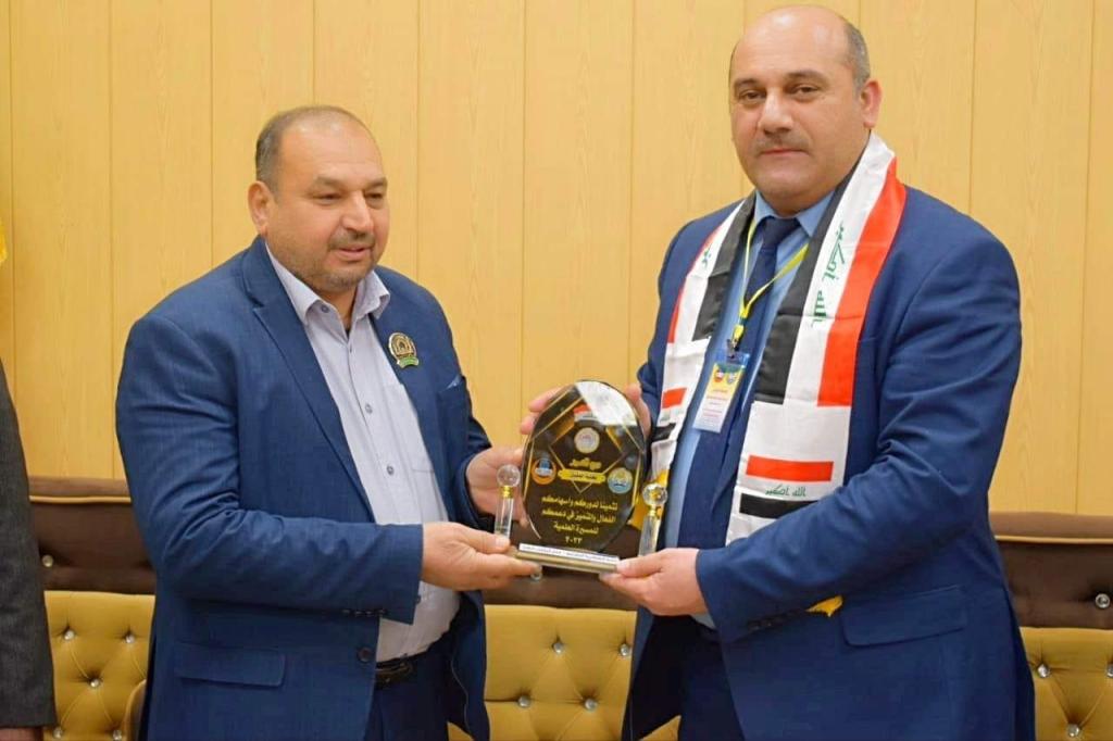 In conclusion of the cultural program in Samarra, the Dean of the Faculty of Law, Dr. Wissam Nemat Ibrahim Al-Saeedi, presented a shield of thanks and appreciation to the Department of Public Relations at the Holy Military Shrine
