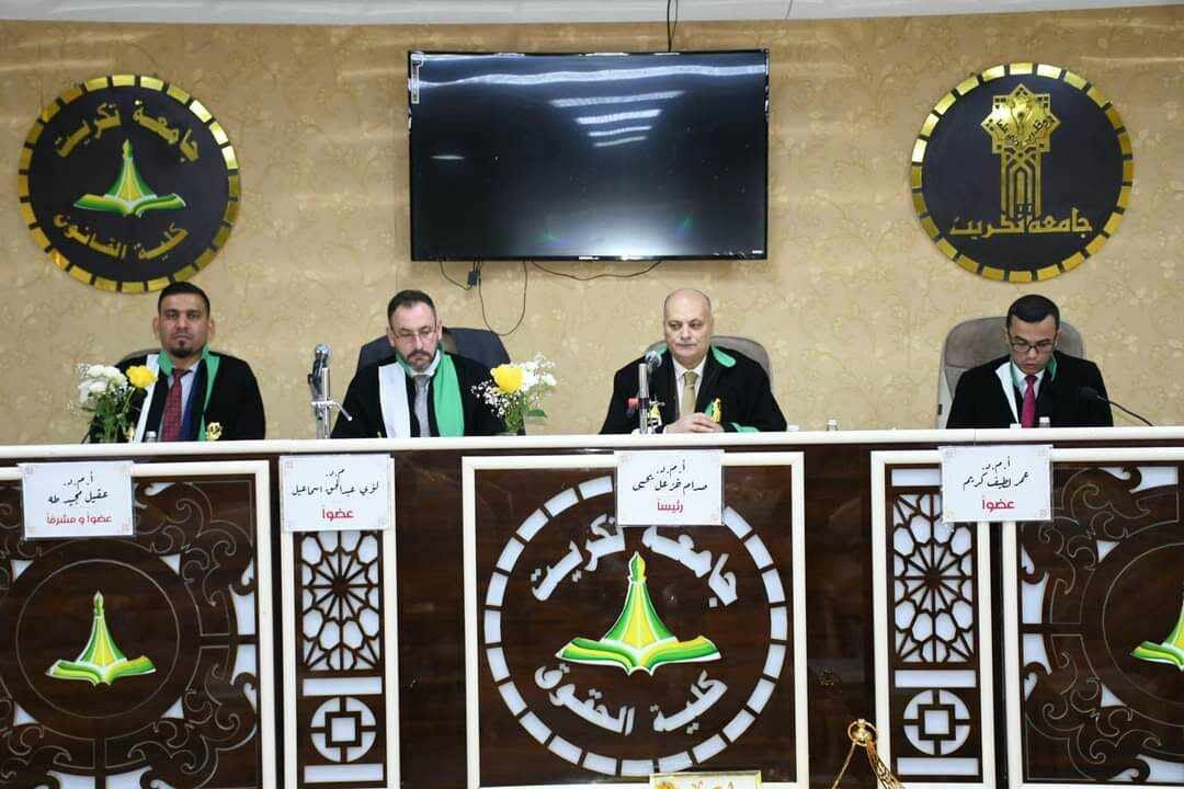 On Monday, September 4, 2023, Assistant Professor Dr. Saddam Khazal Yahya, one of the teachers of the Private Law Branch at the College of Law at the University of Mosul, participated in the membership of the discussion committee for the master’s thesis tagged The role of religious fatwa in resolving personal status claims – a comparative study by the student Yasmine Sami Mikhlif. The discussion committee approved a thesis The student as part of the requirements for obtaining a master’s degree in private law, and this participation expresses the scientific sobriety and the prestigious academic position enjoyed by the professors and teaching staff of our dear college and our prestigious university.