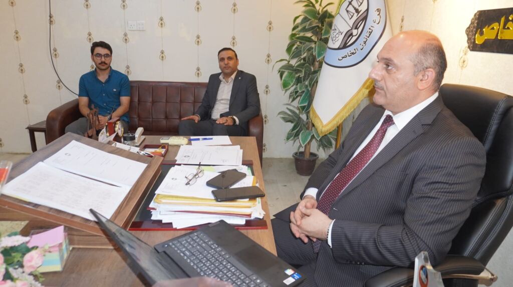 On Monday, July 22, 2024, the Private Law Branch at the College of Law at the University of Mosul discussed a master’s thesis on the protection of minors in private international law, part of which was attended by Assistant Professor Dr. Wissam Nemat Ibrahim Al-Saadi, Dean of the College, and a number of members of the College Council and its faculty.