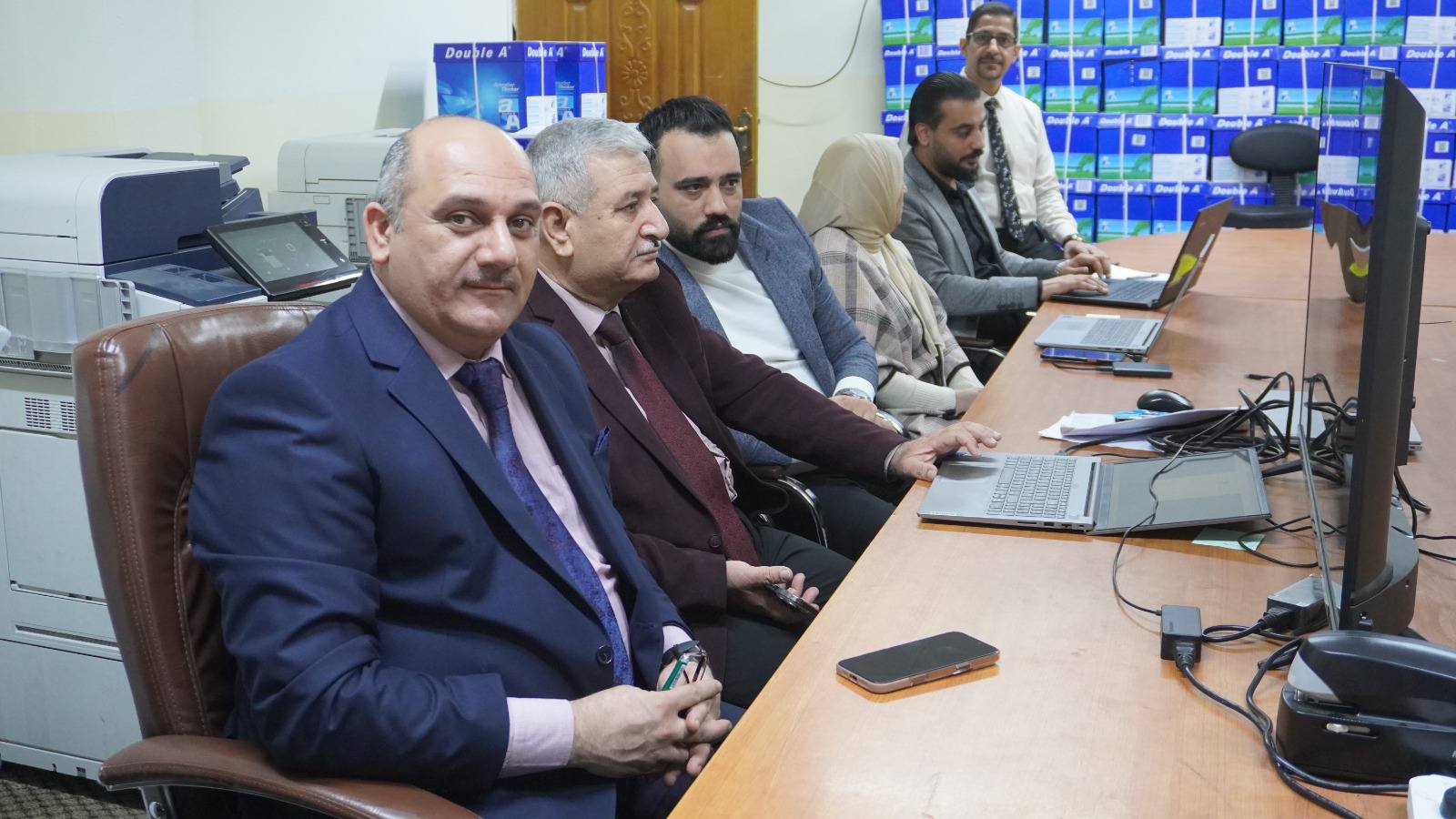 Assistant Professor Dr. Wissam Nemat Ibrahim Al-Saadi, Dean of the College, and Professor Dr. Khalaf Ramadan Muhammad, Assistant Dean for Administrative and Financial Affairs, inspected on Monday, November 25, 2024, the work of the Electronic Data Entry Committee for the Scientific and Administrative Cadres of the College’s affiliates (Human Resources Management System (HR), where the achievement rates achieved were reviewed, with emphasis on the necessity of meeting all the needs and requirements related to the work of the above committee in a way that contributes to achieving the desired benefit from the above work.