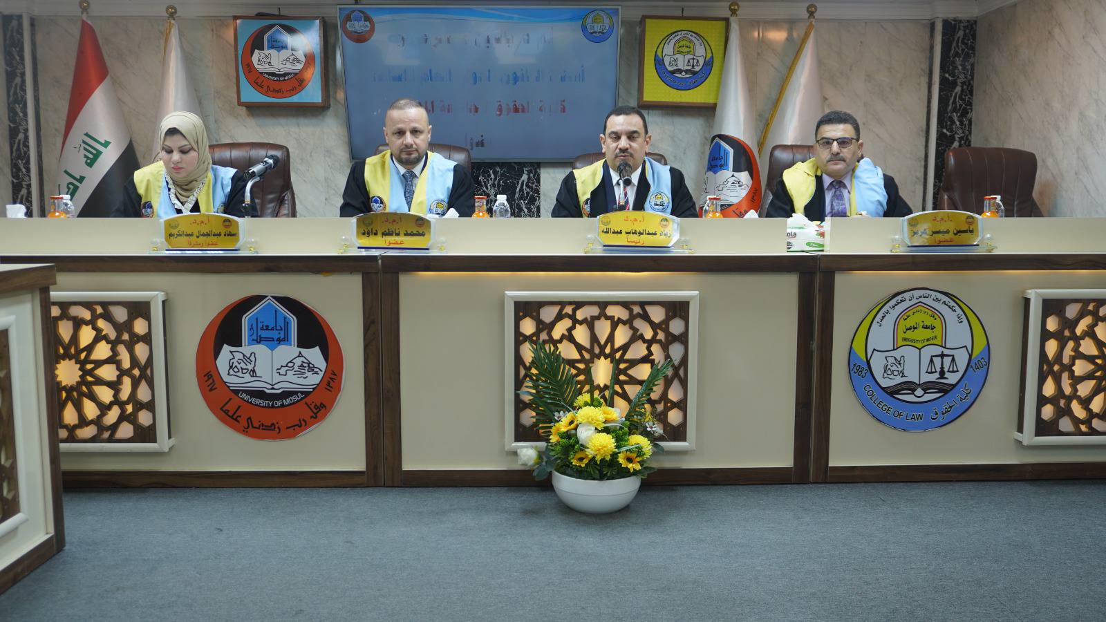 The Public Law Department at the College of Law at the University of Mosul discussed on Wednesday, December 4, 2024, a master’s thesis on the legality of artificial intelligence weapons in light of the provisions of international public law, attended by Assistant Professor Dr. Wissam Nemat Ibrahim Al-Saadi, Dean of the College, and a number of members of the College Council and its lecturers.