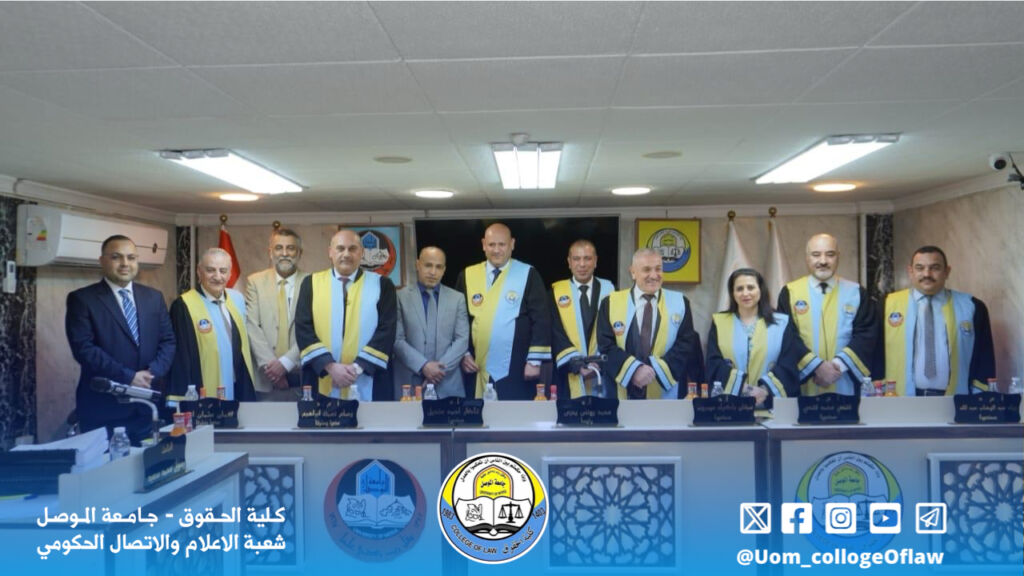 Due to the distinguished efforts exerted by Professor Dr. Nazer Ahmed Mandil / Faculty of Law at Tikrit University and his participation in the membership of the discussion committee of doctoral student Rasul Muhammad Saeed / Public Law Branch, he was honored with an appreciation certificate by Professor Dr. Abdulaziz Ramadan Ali, Dean of the College, and in turn the deanship of the college and its scientific and administrative staff and students congratulate Dr. Nazer Ahmed Mandil and wish him more creativity and giving in service to the march of science and knowledge in our dear Iraq.