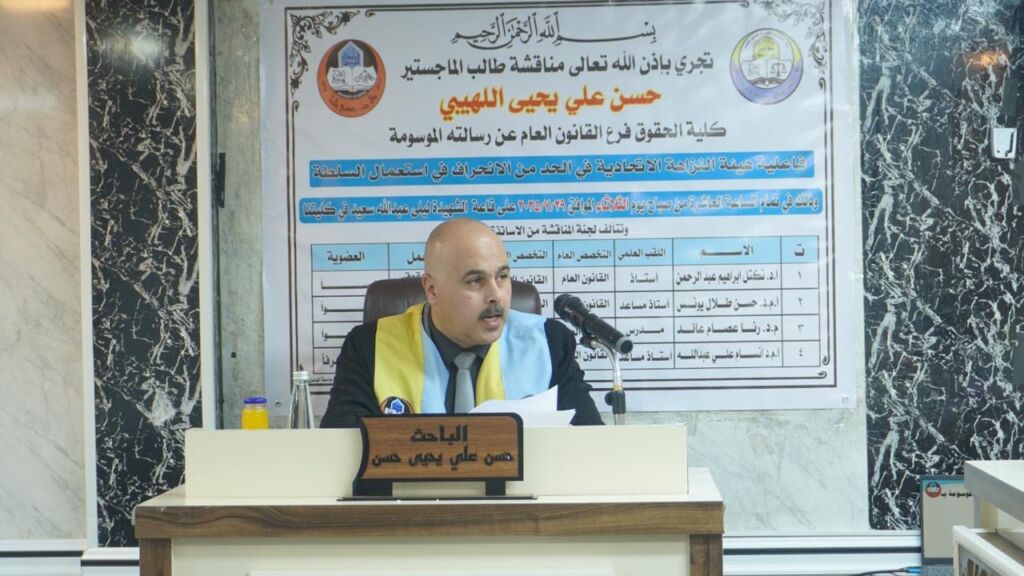 The Council of the Deanship of the Faculty of Law congratulates the issuance of the university order to assign Assistant Professor Dr. Wissam Tawfiq Abdullah to the duties of scientific assistant in the college and highly appreciates the efforts exerted by Professor Dr. Mohammed Siddiq Abdullah throughout the period of his assignment, wishing them continued success and success.