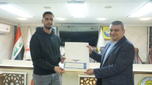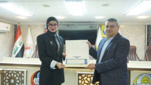 During the ceremony, certificates of appreciation were distributed to outstanding students in recognition of their efforts and active participation in several volunteer initiatives undertaken by the University of Mosul and the College of Law. The certificates were presented by Assistant Professor Dr. Wissam Tawfiq, Associate Dean for Scientific and Student Affairs, who commended the students’ spirit of initiative and generosity, emphasizing that these efforts contribute to strengthening the culture of volunteer work and community service both within and outside the university.