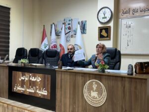Dr. Saeed Khadida Al-Sinjari and Lecturer Ikram Basil Dhunoun participated in a workshop titled “Financial Rights of Public Employees,” organized by the Human Rights Unit and the Continuing Education Unit at the College of Veterinary Medicine, in cooperation with the Human Rights Division at the University of Mosul Presidency and the Studies and Planning Department/Sustainable Development Unit at the University Presidency, on Sunday, December 14, 2025.