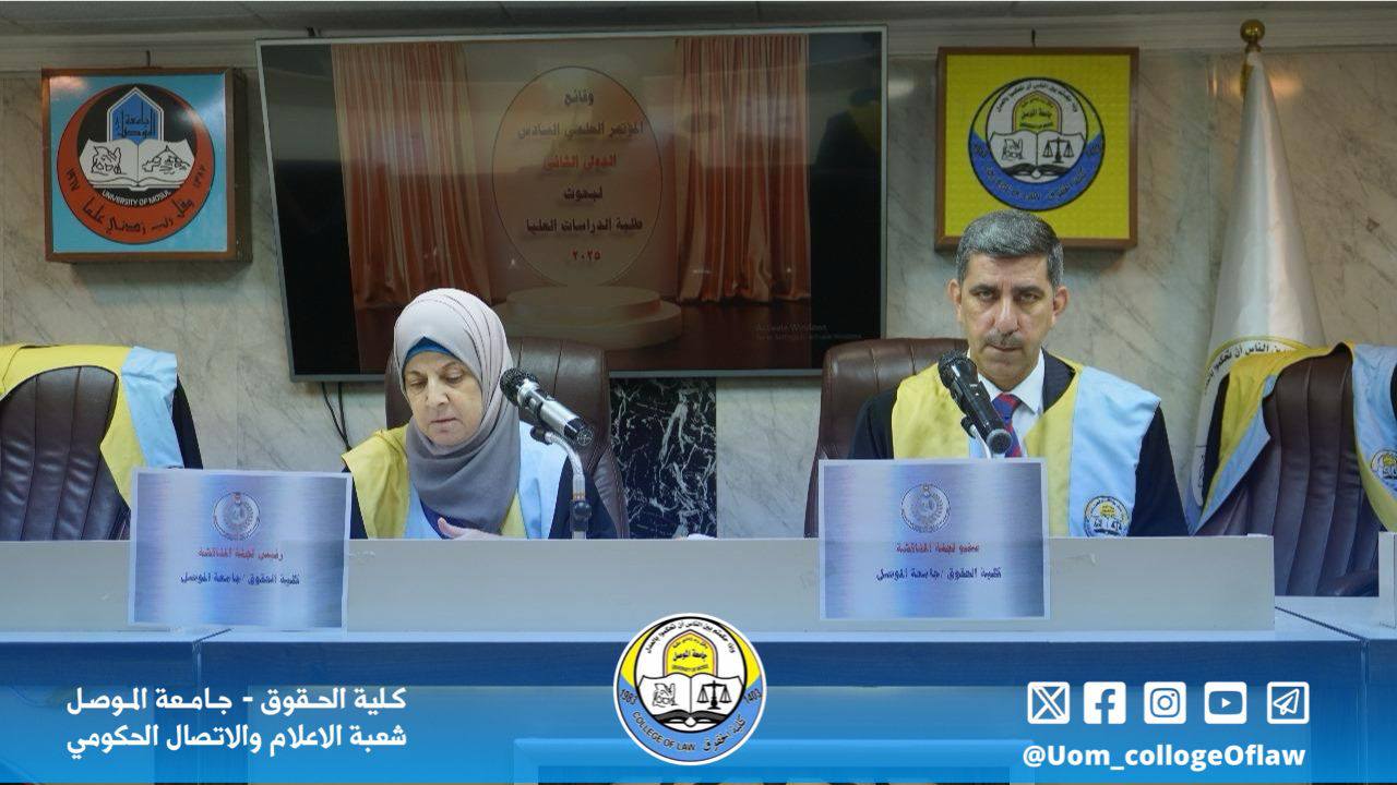 ruaahukmat2025-06-11T09:40:14+00:00The Sixth International Scientific Conference for Postgraduate Student Research at the College of Law at the University of Mosul kicked off under the slogan "For a Healthy Iraq... No to Extremism, Yes to Peace and Justice." Under the patronage of Professor Dr. Wahid Mahmoud Al-Ibrahimi, President of the University of Mosul, and under the supervision of Professor Dr. Abdulaziz Ramadan Ali, Dean of the College of Law, the College, in cooperation with the Department of Psychological Counseling and Educational Guidance, held its Sixth International Scientific Conference for Postgraduate Student Research on Monday, June 2, 2025. The conference began with a minute [Read More]