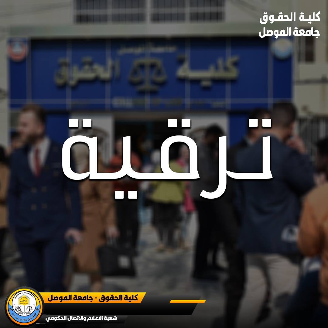ruaahukmat2025-09-25T07:19:00+00:00With great pride and pleasure, the Council of the College of Law at the University of Mosul, on behalf of the faculty, staff, and students, extends its warmest congratulations to Professor Osama Ahmed Mohammed Al-Naimi on his promotion to the rank of Professor. This high academic rank is the fruit of continuous scholarly effort, distinguished academic contributions, and clear contributions to enriching the scientific and legal movement. It is a natural entitlement for a career rich in achievements.