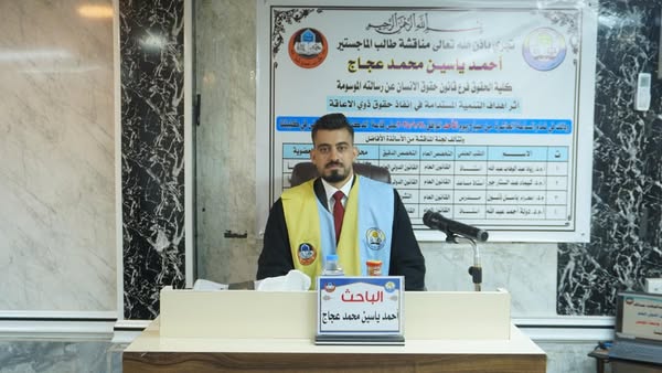 On Thursday, 31/7/2025, a master’s thesis by Hassan Ali Hassan Al-Rawi, entitled: “The temporal element of the corner of jurisdiction in the administrative decision (comparative study)”, was defended under the supervision of Assistant Professor Dr. [Read More]