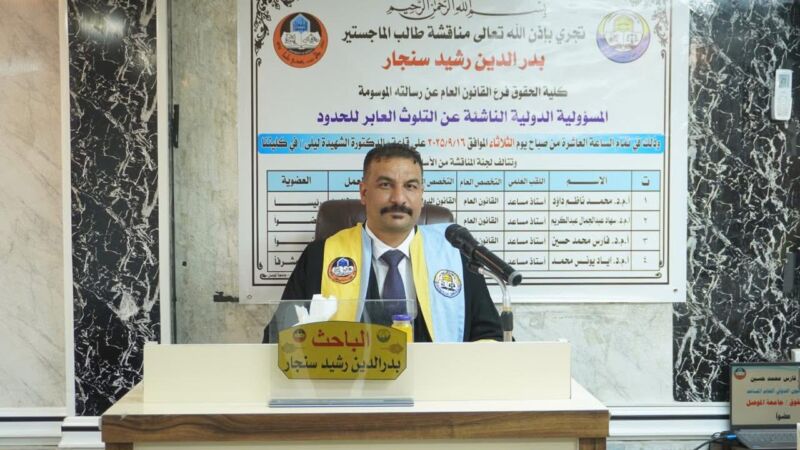 On Tuesday, September 16, 2025, a master's thesis discussion was held at the College of Law, University of Mosul, in the Dr. Shahida Laila Hall. The thesis was submitted by Badr al-Din Rashid Sinjar, a [Read More]
