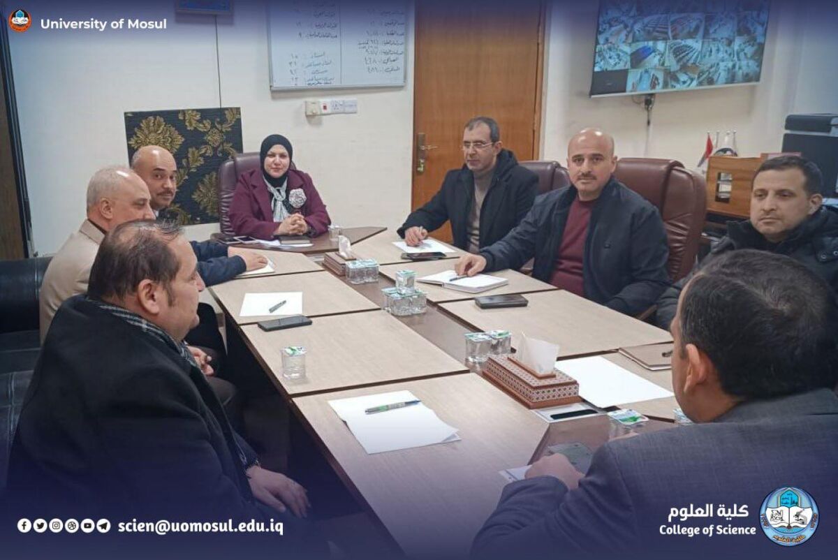 The Council of the College of Sciences held its tenth open session on Thursday, December 30, 2021, headed by the Dean of the College, Assistant Professor Dr. Hiyam Adel Al-Taii, and the membership of the Dean’s Associates and Heads of Departments.The council discussed preparations for graduate students’ exams, as well as updating the curricula for primary and postgraduate studies, as well as discussing many other topics on the agenda.