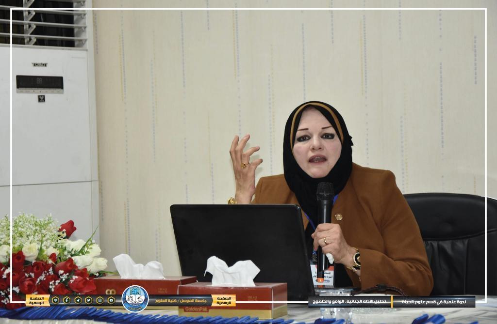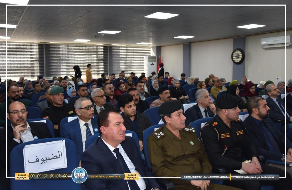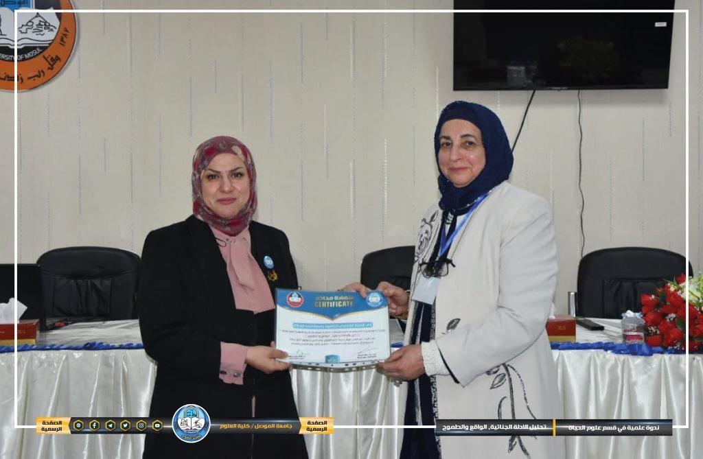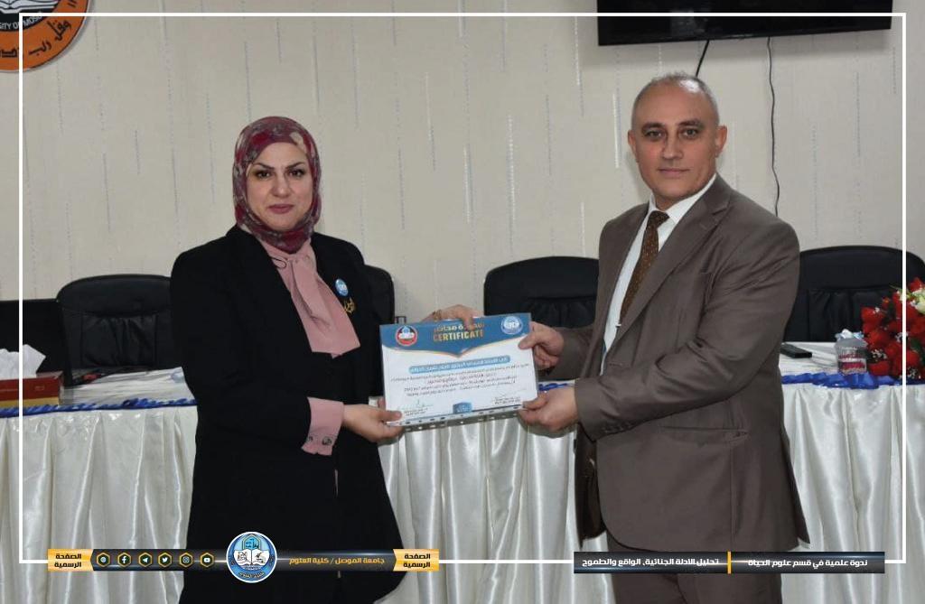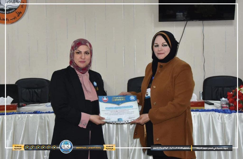 On a distinguished morning from the mornings of Mosul Al-Hadbaa, and its Gharaa University, under the generous patronage of the respected President of the University of Mosul, Prof. Dr. Kossay Kamal Al-Din Al-Ahmady, and in the presence of the respected Mr. Assistant President of the University of Mosul, Prof. Dr. Munir Taha Al-Badrani, and the respected Mrs. Dean of the College of Sciences, Prof. Dr. Hiyam Adel Al-Taii and a number of judges, security leaders and specialists, in addition to the members of the faculty council and a large group of faculty and students of the faculty, the Department of Biology in our faculty held its scientific symposium tagged “Analysis of Forensic Evidence, Reality and Ambition”.The symposium, which took place at exactly ten o’clock this morning, Monday, March 7, 2022, in the Biology Department of Professor Dr. Mahmoud Hajj Qassem’s hall, opened with the recitation of verses from the Holy Quran and the playing of the national anthem, in addition to the recitation of Surat Al-Fatihah on the souls of the martyrs of Iraq, and then a lecture An opening session followed by a break, then several lectures were delivered by a group of the department’s lecturers aimed at:1- Keeping abreast of developments in technology and adopting molecular biology in forensic analysis.2- A statement of the most important methods adopted for inference and detection of the existence of forensic evidence.3- Identifying the genetic fingerprint and the Banana fingerprint and their uses with the determination of human character and identity.4- Giving a legal justification for some cases of abortion to some pregnant women.5- Restoring the legal rights of the legal heirs.6- Shedding light on the most important techniques used in forensic DNA analysis.7- Reaching the perpetrators quickly to prevent them from committing other crimes.8- Adopting the most efficient methods for extracting forensic DNA.9- Demonstrating the strength and accuracy of bioinformatics programs in the speed of analysis and interpretation of the results of forensic DNA.The symposium came out with many recommendations made by the head of the department, assistant professor Dr. Raed Salem Al-Saffar. At the end of the symposium, the lecturers were awarded certificates of appreciation for their fruitful efforts in holding the symposium, and all participants will be given certificates of participation in the symposium.