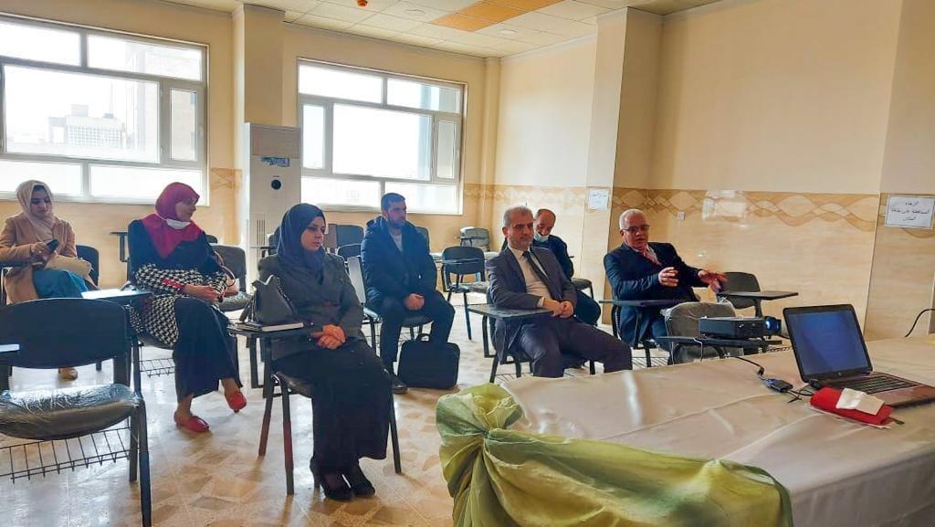 The Department of Biological Physics concluded its scientific course entitled “Modern Applications of Biomanufactured Nanoparticles”, which was held in the department within the Carnival of the College of Science, attended by: Assistant Prof. Dr. Marwan Zuhair Elias and Assistant Prof. Dr. Rana Tariq Yahya and lecturer Dalia Abdel Ilah Rahawi. The course included a discussion of the concept of bio-manufacturing of nanoparticles and the possible mechanisms for manufacturing these particles in plants and microorganisms, in addition to effective aggregates for reducing metal ions and converting them into nanoparticles. The course also dealt with the physical properties of nanoparticles and the techniques used to detect the formation of nanoparticles and study their properties in terms of shape, particle size, crystal structure and effective aggregates that contribute to reducing metal ions and making nanoparticles from them, in addition to addressing the modern applications of these particles in the fields of medicine and agriculture. A number of faculty and students participated in the course, and the participants were given a certificate of participation.