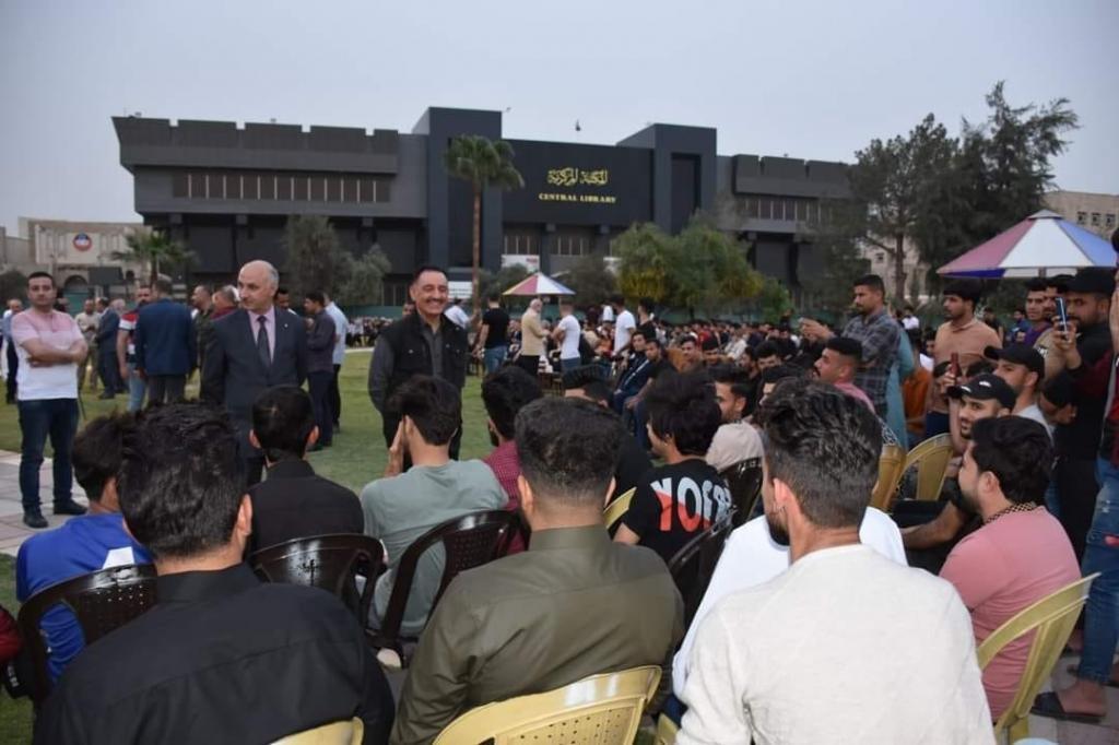 In the presence of the President of the University of Mosul, Prof. Dr. Kossay Kamal Al-Din Al-Ahmady, the assistants of the President of the University and the members of the University Council, the Dean of the College of Sciences, Prof. Dr. Hiyam Adel Al-Taii, participated in the Iftar banquet held by the Presidency of the University for the students of the internal departments, which was held in the Student Marker Gardens.As this initiative came on the occasion of the holy month, it also expresses the high sense of parental responsibility of the university presidency towards its students and guests residing in the internal departments, and relieves them in conjunction with the period of students’ quarterly exams.