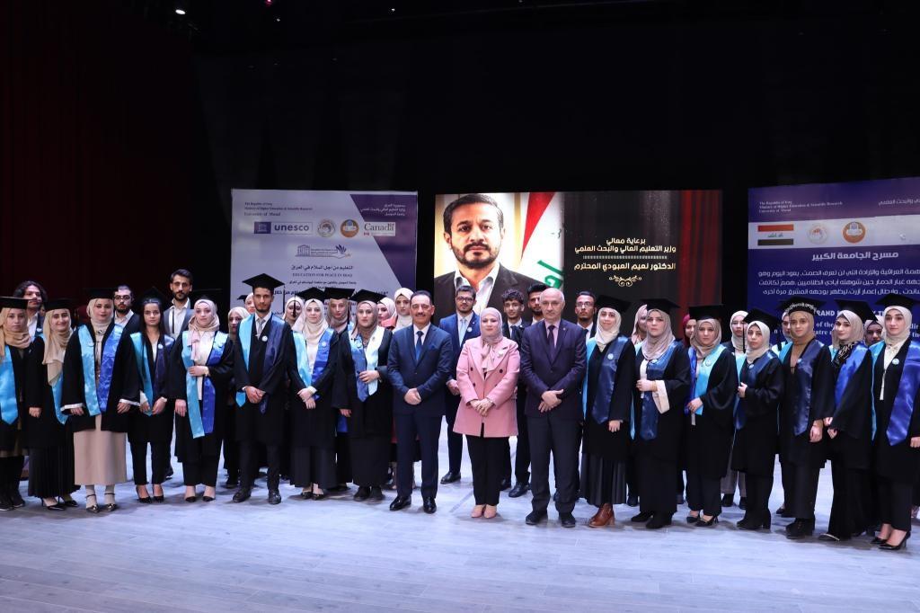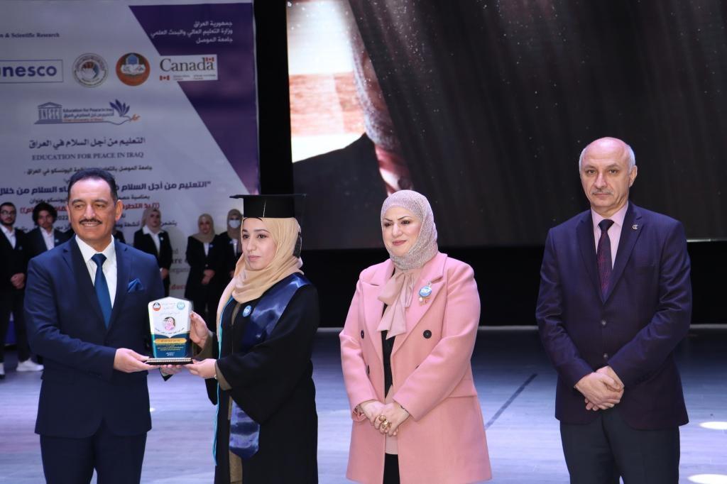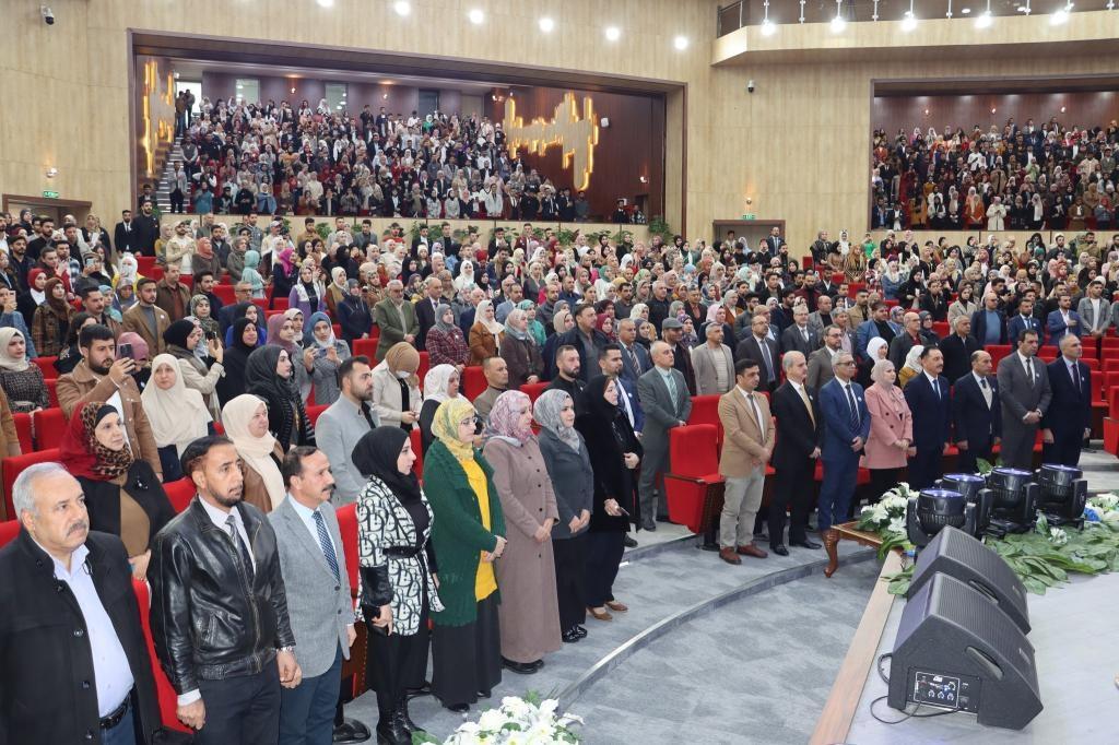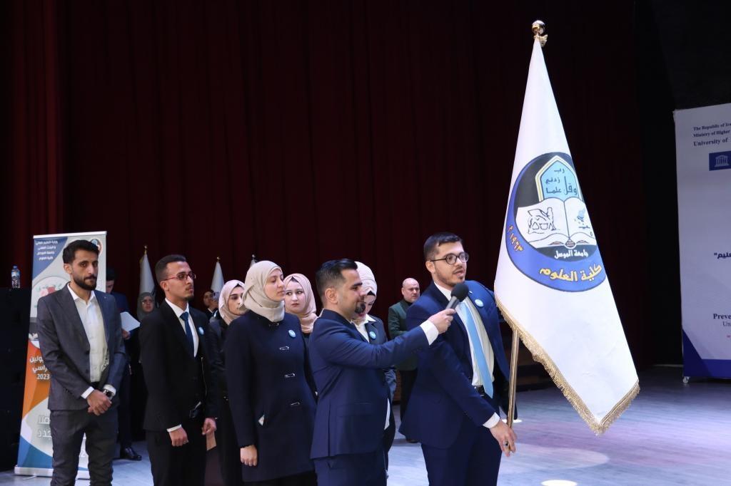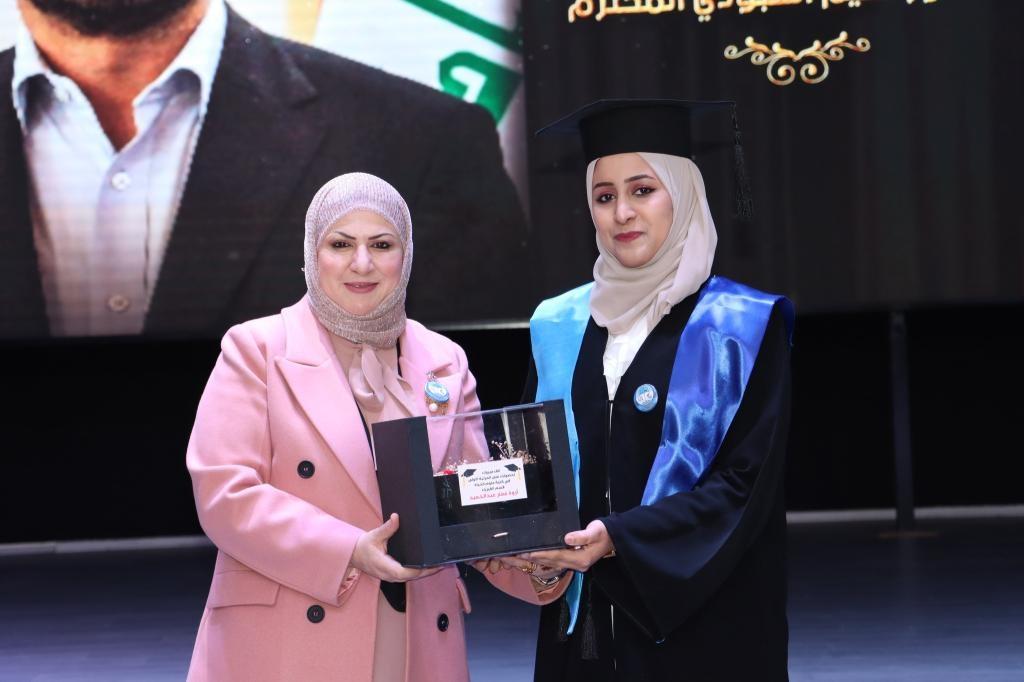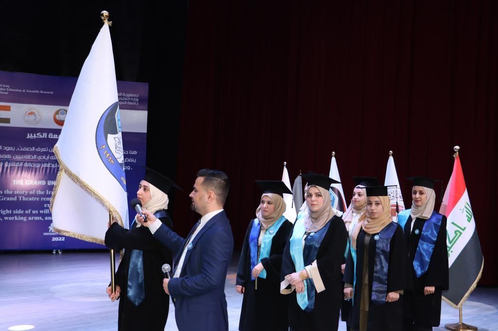 Under the auspices of the Minister of Higher Education and Scientific Research, Dr. Naeem Al-Aboudi, in the presence and supervision of the president of Mosul University, Professor Dr. Qusai Kamal Al-Din Al-Ahmadi and the Dean of the Science College, Professor Dr. Hiyam Adel Ibrahim.The Deanship of Science College has organised a ceremony on the 21st of December in the hall of the Grand Theater of the University of Mosul to honour the top-ranked students of the fourth stages in the college for the academic year 2021-2022 and to welcome the new students who joined our college this year.The top-ranked students were congratulated on their achievement by providing them with a certificate of appreciation for their efforts and supporting them to continue with success and excellence.