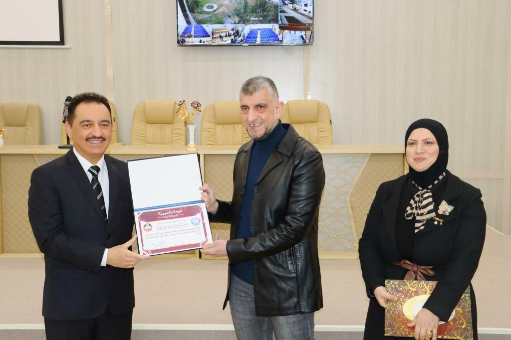 In the early morning hours of Wednesday, the 4th of January, 2023, The large central hall (Professor Dr. Farouk Al-Omari Hall) was reopened following a major refurbishment by the president of the University of Mosul, Professor Dr. Qusai Kamal Al-Din Al-Ahmadi, and the Dean of College, Professor Dr. Hiyam Adel Ibrahim, with attendance the Dean of the College of Medicine, Professor Dr. Basil Muhammad Natheer, the family of Professor Dr. Farouk Al-Omari.The President of the University praised the diligent follow-up of the Dean of the College and the continuous tremendous efforts of the Department of Construction and Projects in the Presidency of the University, represented by the Engineer Osama Ahmed Hamdoon, in the process of reconstruction of the university buildings. Whereas the Dean of the college clarified in her talk that the auditorium’s capacity is approximately 300 seats, praising the concerted efforts that contributed to its refurbishment.