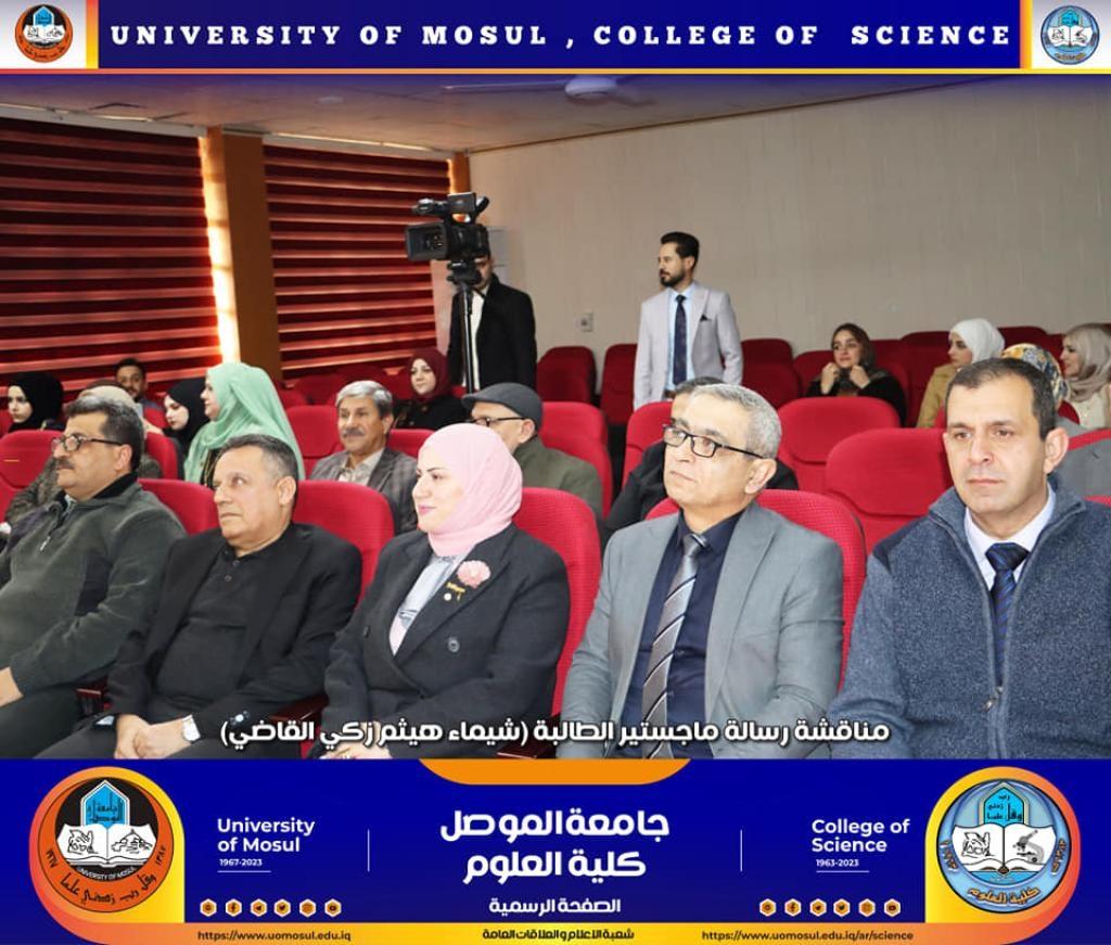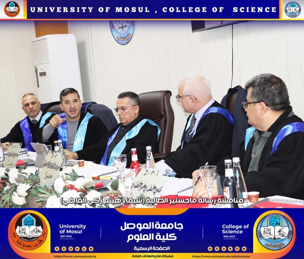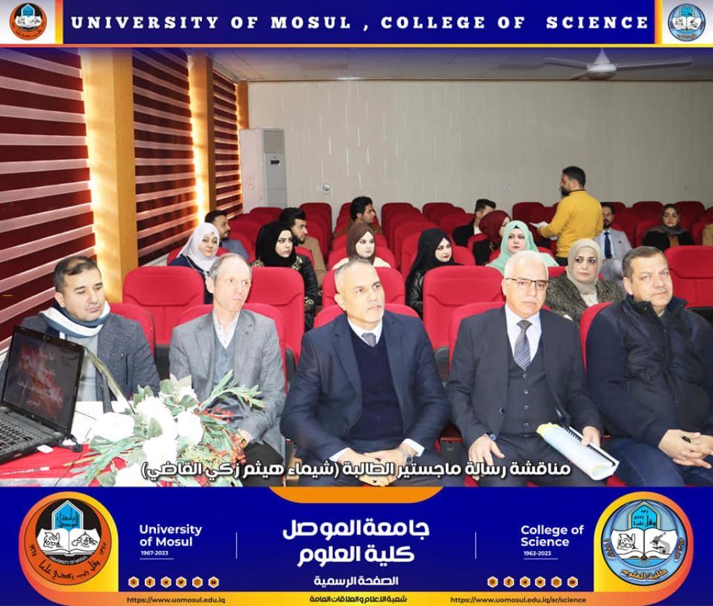 A master’s thesis entitled “A Study of the Effect of the Magnetic Field on Some Blood Parameters of Leukemia Patients in the Laboratory” was discussed in the department of Physics on Tuesday, the 31st of January, 2023, attended by the Dean of the College, Prof. Dr. Hiyam Adel Ibrahim, the dean’s assistants, the department head and a number of the college academic staff.The study submitted by the student (Shaima Haitham Zaki Al-Qadi) dealt with conducting a study on patients with blood diseases (acute and chronic leukemia) for ages ranging from (4-70 years) for both genders, as the groups were exposed to a cumulative magnetic field for a different period of time and for different doses.Measurements conducted on male and female patients with acute leukemia for ages (4-70 years) showed a significant decrease when compared with the control group in the number of red blood cells and platelets at the dose (0.1, 0.5, 0.7T), while there was a significant increase in the number of blood cells When exposed to the magnetic field at the dose (0.4T) in the measurements of blood parameters for ages (4-70 years), the female measurements showed a greater effect than the male measurements for the same dose that exposed to the cumulative magnetic field.The discussion committee was chaired by Assistant Professor Dr. Salah Abdel Ezzo, Assistant President of the Technical University in Dohuk, and the membership by each Assistant Professor Dr. Yasser Abdel Jawad Abdullah and the lecturer Dr. Ziyad Thanoun Dawood, and under the supervision of each of the Assistant Professor Dr. Mazen Ahmed Abd Ghazal and the Assistant Professor Dr. Qusai Khattab Omar Al-Dulaimi.