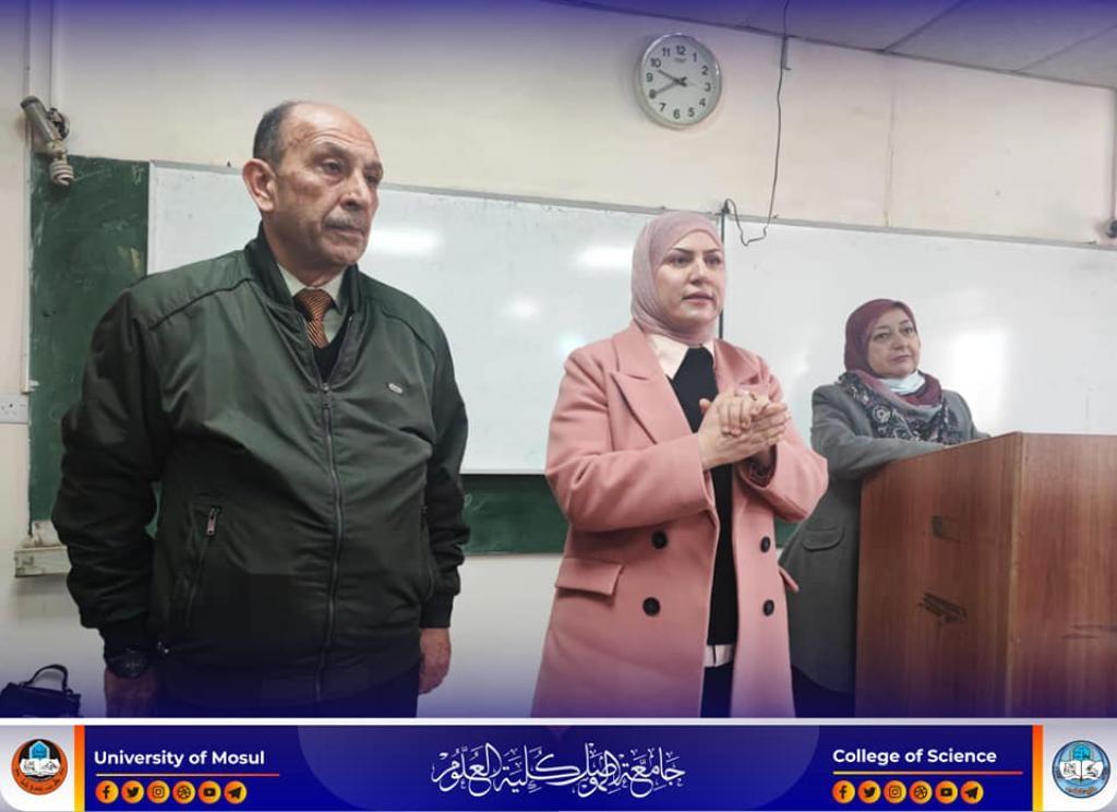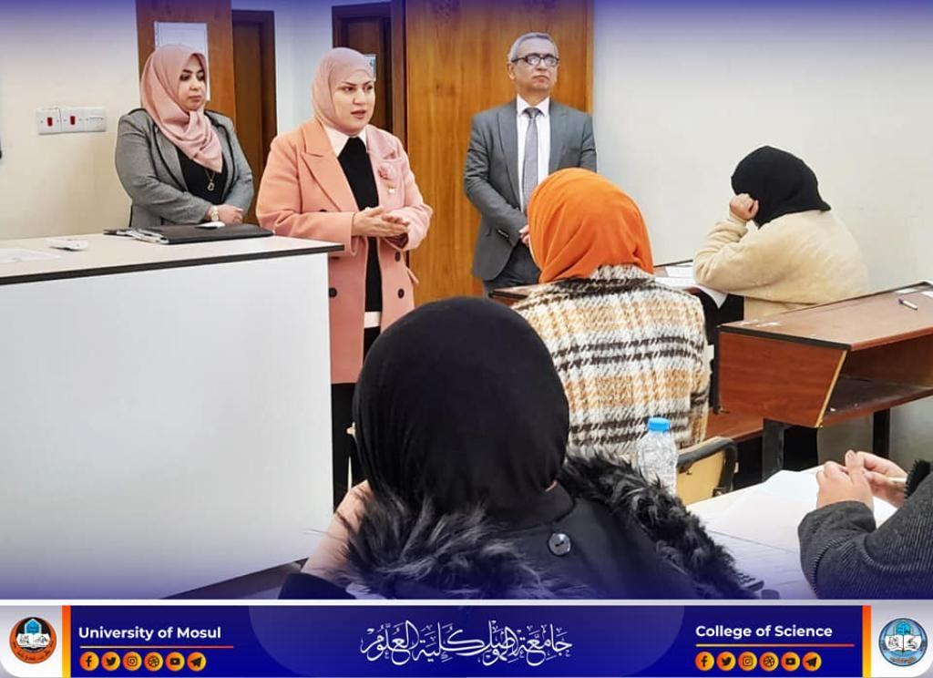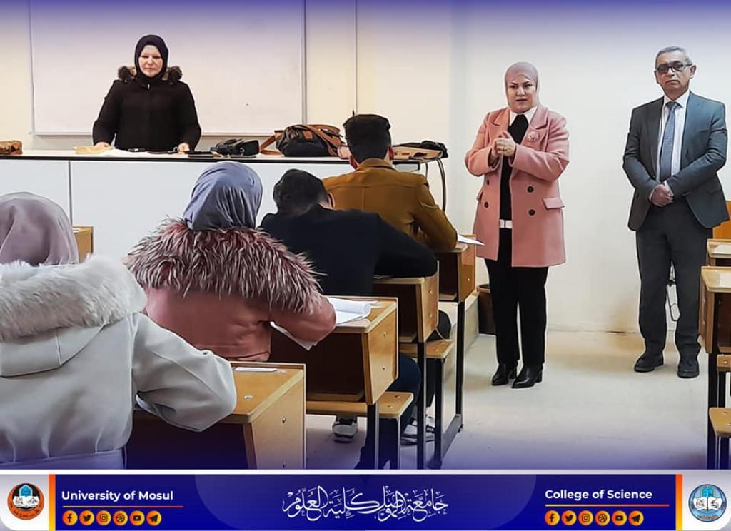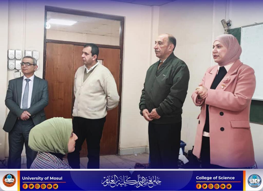 The Dean of the College of Science, Prof. Dr. Hiyam Adel Ibrahim, and the dean’s assistants for the scientific and administrative affairs inspected the progress of the practical final exams for the first stage of the undergraduate students in the Departments of Chemistry and Biology on Thursday, the 16th of February, 2023.
