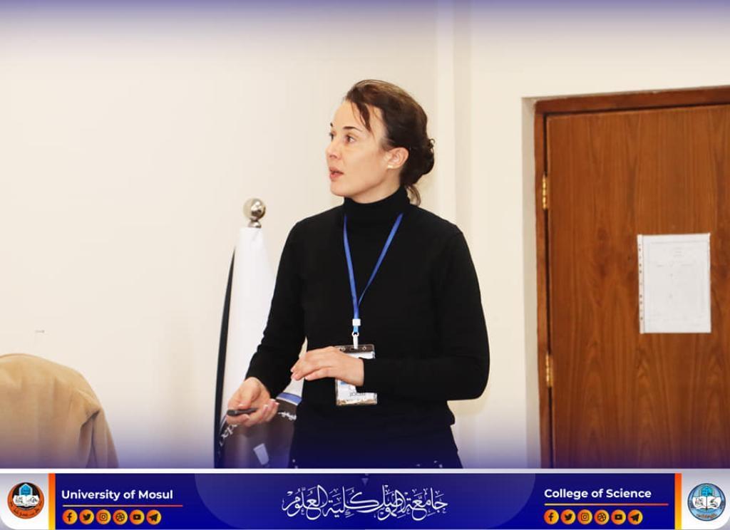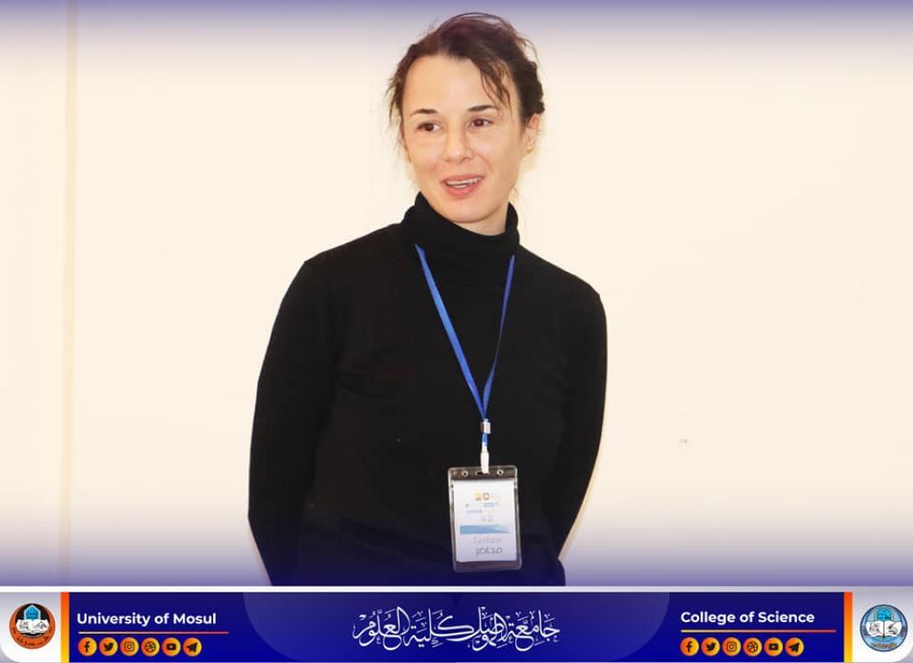 As one of the activities of the seventh student conference held by the University of Mosul in cooperation with the German Universities of Dortmund and Austrian Graz, the Department of Chemistry in our college hosted a scientific lecture entitled “Nanophase separation of flexible and sustainable semiconductors with high stretch for the purpose of obtaining a material of low elasticity with high mobility” on Wednesday the 15th of February, 2023.It Lecture was presented by Prof. Dr. Francesca Liesl from the Leipzig Polymer Research Institute (IPF) at the Technical University of Drsdel, and was attended by the Dean’s assistants for the Scientific and Administrative Affairs, the Head of the Chemistry Department and a number of the college academic staff and students.