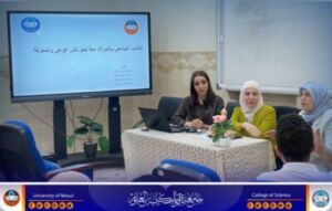 Under the patronage of the president of the University of Mosul, prof. Dr. Wahid Mahmoud Brahimi, and under the supervision of the dean of the College of science, prof. Dr. Hiyam Adel Ibrahim, the women’s Affairs Committee at the college, and in cooperation with the university presidency / Department of studies and Planning – Sustainable Development Unit, Rehabilitation, employment and follow – up unit, and women’s affairs unit, held a workshop entitled ” The role of women and university students in the dissemination of Science and knowledge ” the workshop was held in the seminars hall-Department of medical physics on Wednesday, September 24, 2025, at ten o’clock in the morning.