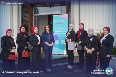 This participation comes within the efforts of Mosul University in promoting health awareness and empowering women to prevent and detect cancer diseases early, where the workshop was held on Wednesday, October under the title “Project to accelerate the elimination of women’s cancers in Iraq” in cooperation with the Iraqi Ministry of Health / Cancer Council and the Middle East Network for Community Health Organization.