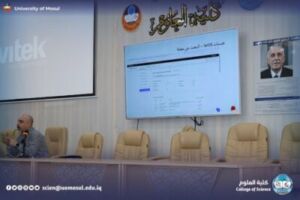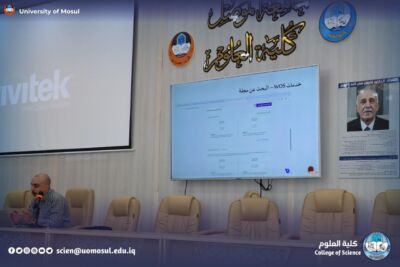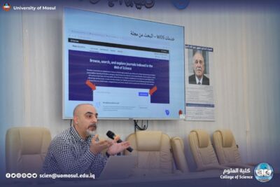 Under the patronage of the blessing of the president of Mosul University, prof. Dr. Wahid Mahmoud Brahimi, and the supervision of the dean of the College of science, prof. Dr. Hiyam Adel Ibrahim, and as part of the efforts of the Ministry of higher education and scientific research in promoting sober scientific publishing and developing the capabilities of researchers to use scientific research platforms, the electronic computing center held on Wednesday, November 5, 2025, in cooperation with the Department of scientific affairs, a training workshop to activate teachers and graduate students on the web of Science and Scopus platform using the official university mail, delivered by Assistant Prof. Dr. Zuhair Qais Ibrahim. It was attended by a number of college teachers and graduate students in the Hall of Dr. Farouk al-Omari (may Allah have mercy on him) at the College of science.