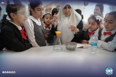 Flowers of Zahra Al-Mada’in elementary school decorate the Chemistry Department of our college with a scientific visit