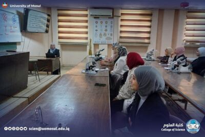 Under the patronage of the blessing of the president of Mosul University, prof. Dr. Wahid Mahmoud Brahimi, and the supervision of the dean of the College of science, prof. Dr. Hiyam Adel Ibrahim, and the follow-up and presence of the head of the Department of Biology sciences, prof. Dr. Amjad Abdul Hadi, in line with the directions of the College of Science in supporting scientific research and spreading the culture of sustainable development continuing education, a scientific workshop entitled (The Importance of hydrolyzed enzymes in bacteria and fungi) was held on Tuesday, October 28, 2025, delivered by L. Dr. Heba Khaled Mahmoud and L. Dr. Hoda Walid Hadi al-Hayali and L. Abeer Ahmed Mahmoud Qasem, and the course was attended by Mr. The rapporteur and a number of teachers of the department and his students.
