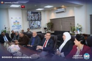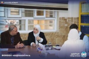 The committee was received by the dean of the College of Science, Prof. Dr. Hiyam Adel Ibrahim, the distinguished scientific Associate Prof. Dr. Ryan Mazen Faisal, and the head of the Department of new and renewable energies, Prof. Dr. Ahmed Mounir Suhail, the respected.