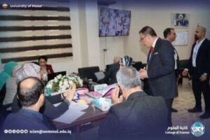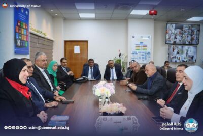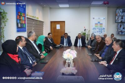 The College of Science – University of Mosul received today the National Resident team of the National Council for the accreditation of science majors programs, headed by Prof. Dr. Tahsin Hussein Mubarak, president of the National Council for the accreditation of science majors programs / University of Diyala.