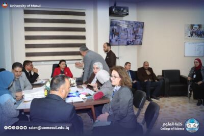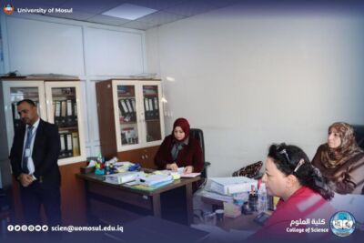 The National assessor team of the National Council for the accreditation of science majors programs concluded its visit to the College of science on its third and last day, dedicated to completing the evaluation of the program of the Department of new and renewable energies, headed by Prof. Dr. Tahsin Hussein Mubarak, chairman of the National Council for the accreditation of science majors programs / University of Diyala, accompanied by Prof. Dr. Noha Salim, Director of quality assurance at the presidency of the University of Mosul.