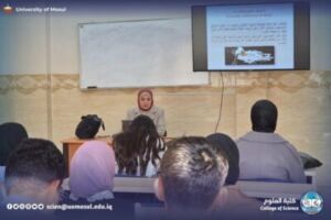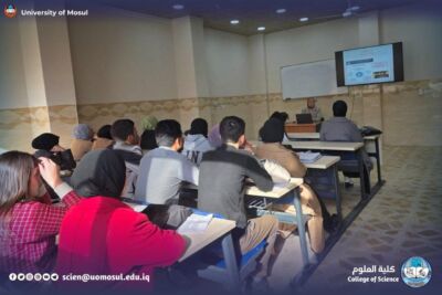 Under the patronage of the blessing of the president of the University of Mosul, prof. Dr. Wahid Mahmoud Brahimi, and the supervision of the dean of the College of science, prof. Dr. Hiyam Adel Ibrahim, and the follow-up and participation of the head of the Department of new and renewable energies, assistant prof. Dr. Ahmed Munir, and within the continuing education programs, the Department of new and renewable energies organized a workshop entitled (How to protect your university future from the scourge of drugs for a sustainable future), on Tuesday, November 18, 2025 at the Ibn Sina Hall in the Department, delivered by L. Maimuna Khalid Qasim, attended by a number of students and teachers of the Department.