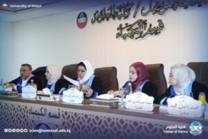 At the end of the discussion, the administrative assistant and on behalf of the dean of the College, Prof. Dr. Hiyam Adel Ibrahim, presented a letter of thanks and appreciation to Prof. Dr. Nadia Ahmed Saleh Mohammed from the College of education for Pure Sciences / University of Tikrit, in appreciation of her scientific efforts and active participation in the discussion.