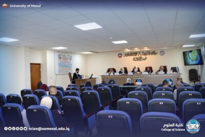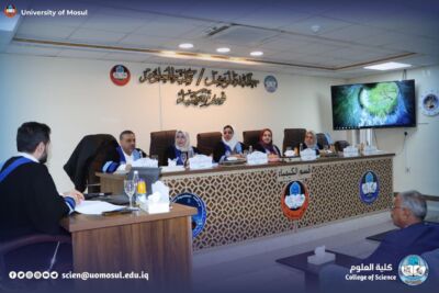 At the end of the discussion, the administrative assistant and on behalf of the dean of the College, Prof. Dr. Hiyam Adel Ibrahim, presented a letter of thanks and appreciation to Prof. Dr. Nadia Ahmed Saleh Mohammed from the College of education for Pure Sciences / University of Tikrit, in appreciation of her scientific efforts and active participation in the discussion.