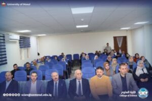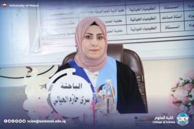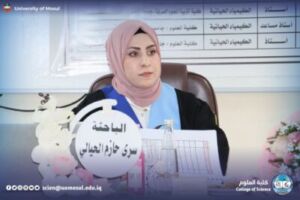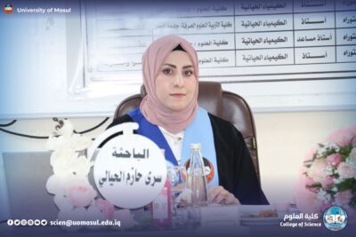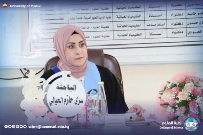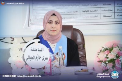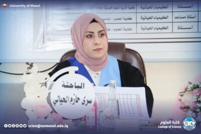On Monday, November 24, 2025, the Department of Chemistry at the College of Science / University of Mosul discussed the master’s thesis tagged “cholecystokinin hormone as a new marker for the early diagnosis of infertility for both sexes” by student Sura Hazem Suleiman al-Hayali, part of which was attended by the dean of the College, Prof. Dr. Hiyam Adel Ibrahim and administrative assistant Prof. Dr. Omar Adel Sharif and a number of college teachers.