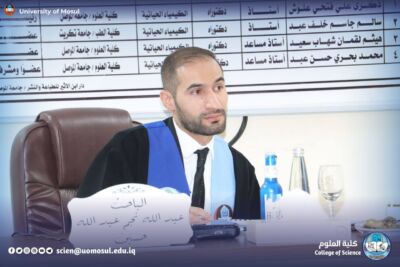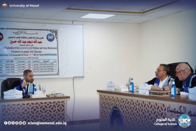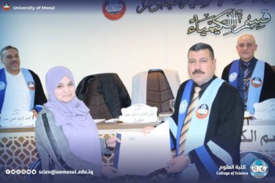 On Wednesday, November 26, 2025, the master’s thesis of the student Abdullah Najm Abdullah Hussein was discussed at the Department of Chemistry at the College of Science – University of Mosul, and the tagged: