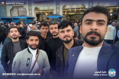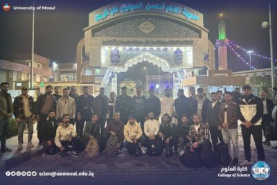 Under the patronage of the president of the University of Mosul, Prof. Dr. Wahid Mahmoud Brahimi, and under the supervision of the dean of the College of Science, Prof. Dr. Hiyam Adel Ibrahim, and in response to the kind invitation from the Husseini shrine in Holy Karbala, a delegation from the College of Science family made a cultural and scientific visit to both holy Karbala and Najaf, within the framework of enhancing cultural, intellectual and scientific communication, and establishing a common knowledge environment that contributes to building an ideal society that serves the homeland in the future.