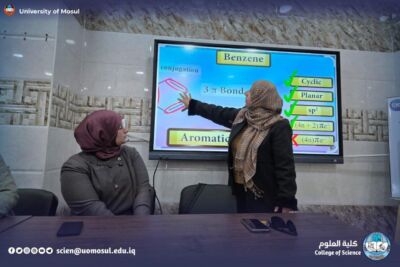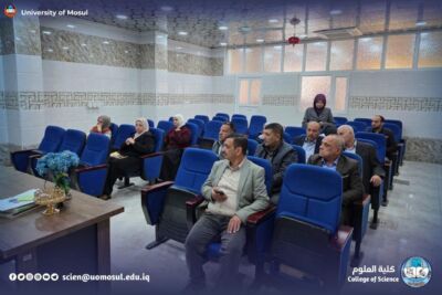 Under the auspices of the blessing of the president of the University of Mosul, Prof. Dr. Wahid Mahmoud Brahimi, and under the supervision and follow – up of the dean of the College of Science, Prof. Dr. Hiyam Adel Ibrahim, in cooperation with the presidency of the University of Mosul / Department of studies and Planning-Sustainable Development Unit, and under the follow-up of the head of the Department of New and Renewable Energies, assistant prof. Dr. Ahmed Munir Suhail, a scientific workshop was held on Monday, November 24, 2025 at Ibn Sina Hall in the Department.