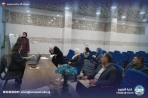 Under the patronage of the president of the University of Mosul, prof. Dr. Wahid Mahmoud Brahimi, and under the supervision of the dean of the College of science, prof. Dr. Hiyam Adel Ibrahim al – Taie, and in cooperation with the presidency of the University-Department of studies and Planning / Sustainable Development Unit, the Department of new and renewable energies organized a scientific workshop entitled: “Applications of Physical Chemistry and analytical chemistry to support the goals of sustainable development”, on Tuesday, November 25, 2025 in the Ibn Sina Hall of the Department, under the follow-up of the head of the Department, Assistant Professor Dr. Ahmed Munir Suhail.