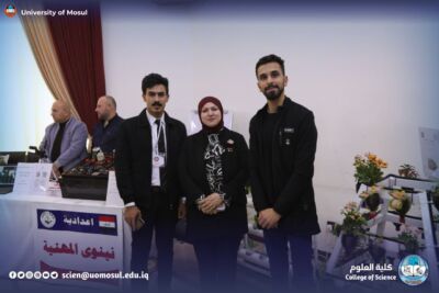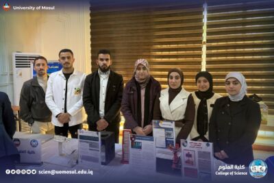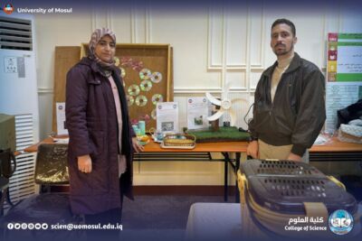 The exhibition was attended by the dean of the College of Science, Prof. Dr. Hiyam Adel Ibrahim, and Dr. Ibtisam Yahya Abdullah, the head of the Scientific Affairs Unit (representing the College), in addition to a number of college teachers and students.