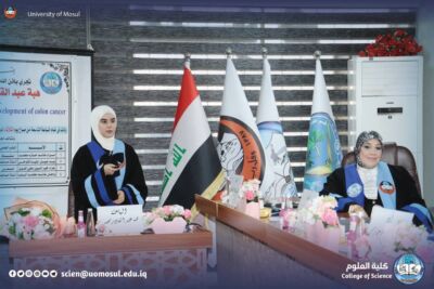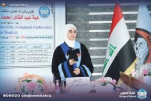 The dissertation, submitted by student Heba Abdulkader from the microbiology branch, dealt with the study of a set of immunological, inflammatory and genetic indicators associated with the development of colorectal cancer, through analyzing the levels of the cancer indicator CEA, measuring autoantibodies against the enzyme ALDH1B1 auto-Ab, in addition to estimating the gene expression of the CXCL12 gene, and following up a number of immunological and hematological variables through various stages of tumor progression.