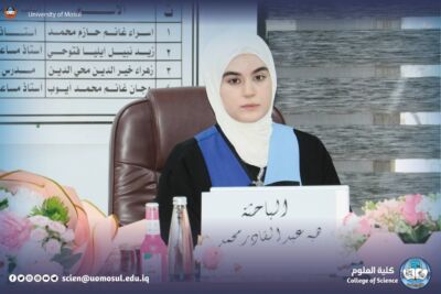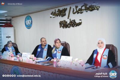 The discussion Committee was chaired by Dr. Esra Ghanem Hazem, with the membership of assistant professor Dr. Zaid Nabil Elia, teacher Dr. Zahra Khairuddin, and under the supervision and membership of assistant professor Dr. Rojan Ghanem Mohammed.