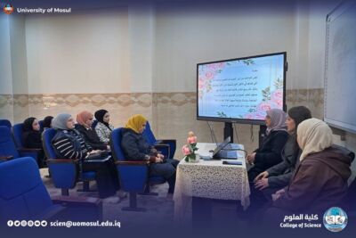Under the patronage of the president of the University of Mosul, Prof. Dr. Wahid Mahmoud Brahimi, and under the supervision of the dean of the College of Science, Prof. Dr. Hiyam Adel Ibrahim, the women’s Affairs Committee at the College of Science, in cooperation with the university presidency / Department of studies and Planning – Sustainable Development Unit, and the women’s Affairs Unit at the university presidency, organized the workshop tagged ” the role of university institutions in reducing violence against women ” within the activities of the campaign against violence against women, and in implementation of the requirements of the third national plan for women, security and peace / pillar of protection and Prevention.